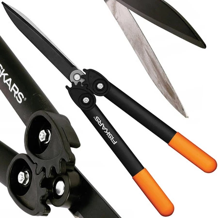 - Nożyce ogrodowe z systemem wspomagającym siłę cięcia 3:1. Wyposażone w wytrzymałe ostrze ze stali nierdzewnej i lekką rękojeść.