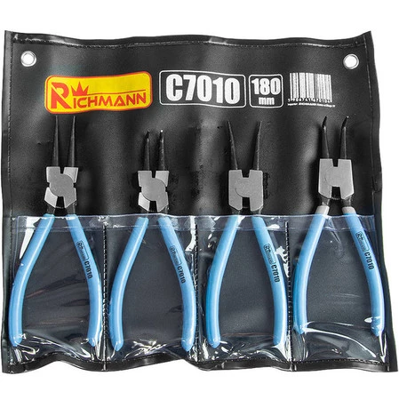 - Zestaw zawiera 4 sztuki szczypiec przeznaczonych do zakładania/zdejmowania pierścieni Seegera.