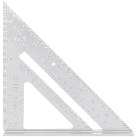 - Został wyposażony specjalne oznaczenia, które pomagają przy docinaniu krokwi w więźbach dachowych.