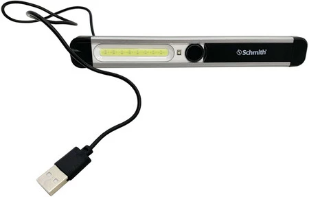 Latarka warsztatowa Schmith Polska to produkt wyposażony w panel ledowy o mocy 120ml. Latarka uruchamia mocne i trwałe światło. Dzięki wbudowanemu magnesowi produkt jest łatwy do umiejscowienia w każdym dowolnym miejscu. Latarka w kształcie „paluszka” integruje w sobie trzy podstawowe funkcje: lampka podstawowa, wskaźnik laserowy oraz latarka kontrolna.