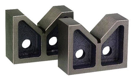 Z odprężonego odlewu żeliwnego. Występują w dokładnie obrobionych parach. Równoległość podstawy i pryzmatycznego wybrania nie gorsza niż 0.03 mm. Kąt wybrania 90°.