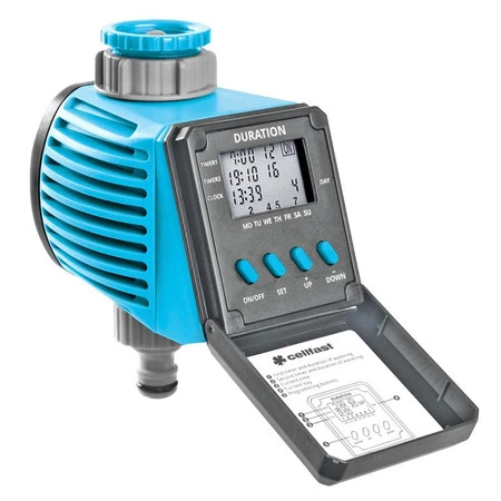 Sterownik nawadniania pozwalający zaoszczędzić czas. Możliwość ustawienia godziny i włączania o konkretnej porze dnia. Wyróżnia się dużym wyświetlaczem i możliwościami programowania.
