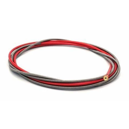Spirala prowadząca drut czerwona o długości 5 m, przeznaczona do prowadzenia drutów spawalniczych stalowych i proszkowych o średnicy 1,0–1,2 mm.