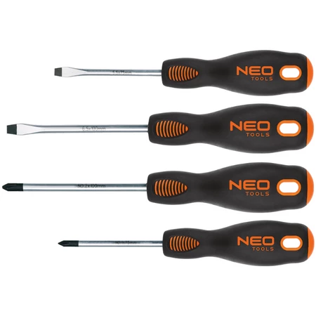 - Zestaw wkrętaków NEO zawiera 4 wkrętaki: płaskie i krzyżowe.