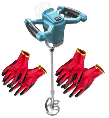 Dedra DED7054 akumulatorowe mieszadło. Idealne do mieszania farb, gruntów, klejów, zapraw, tynków. Mieszadło posiada dwa biegi, gwint M14. Wygodne uchwyty pokryte antypoślizgową gumą.