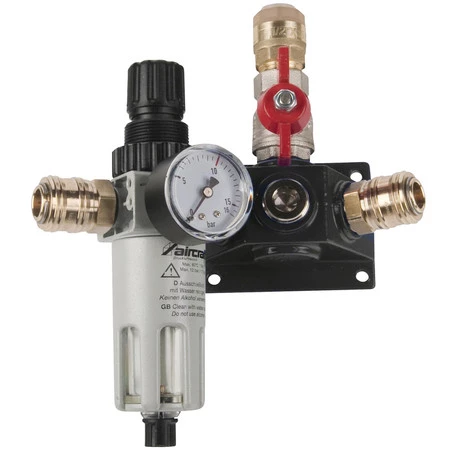- Bloki rozgałęźne z filtrem regulatorem ciśnienia i smarownicą mgłową idealnie nadają się do małych przestrzeni