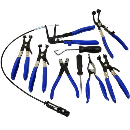 Bogaty zestaw szczypiec umożliwia montaż i demontażu opasek taśmowych, opasek osłon przegubów, opasek typu click oraz click-r, oraz szczypce do demontażu przewodów paliwowych, podciśnieniowych itp.