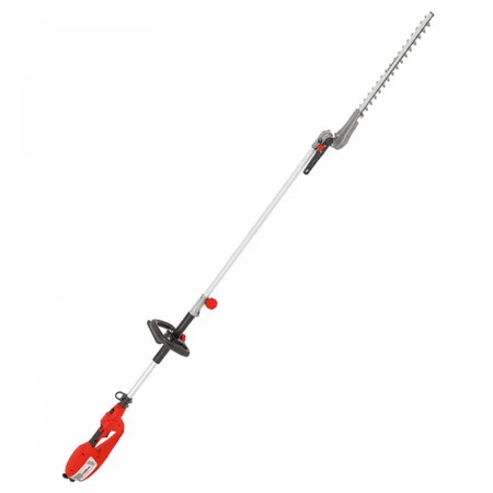 - Model ten posiada regulowany kąt głowicy pozwalający na precyzyjne cięcia oraz wysięgnik teleskopowy ułatwiający dotarcie w trudnodostępne oraz wysoko położone miejsca.