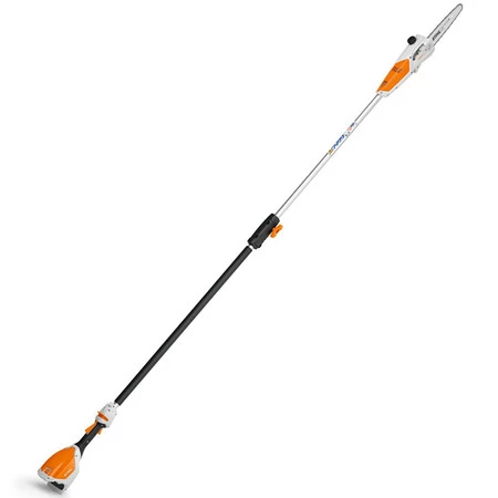 Lekka podkrzesywarka akumulatorowa o dużej wydajności cięcia do wszelkich prac związanych z pielęgnacją drzew. Piła łańcuchowa PM3 1/4" i boczny napinacz piły łańcuchowej. Hak do gałęzi do łatwego usuwania ściętego materiału z drzewa, półprzezroczysty zbiornik oleju, ergonomiczna jednostka sterująca i dzielony wysięgnik umożliwiający łatwy transport i wygodne przechowywanie urządzenia. Długość całkowita 280 cm.
