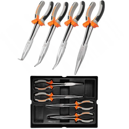 - Zestaw 4 sztuk szczypiec wydłużonych umieszczonych we wkładzie do wózka warsztatowego typu B.