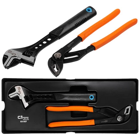 - W skład zestawu wchodzą: klucz do rur oraz szczypce nastawne.