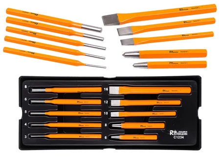 - Każdy punktak, przecinak i przebijak posiada dedykowane i oznaczone miejsce we wkładce narzędziowej;