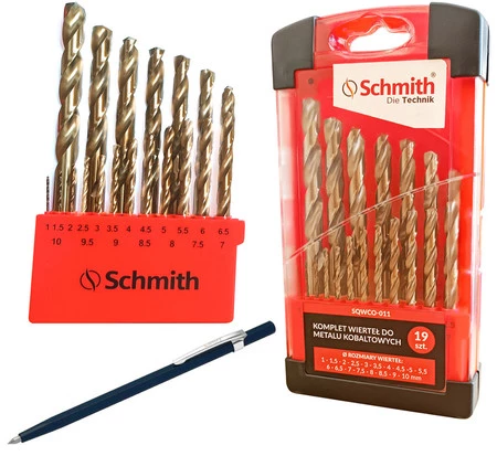 Zestaw Wierteł Kobaltowych Do Metalu 19szt Schmith SQWCO-01