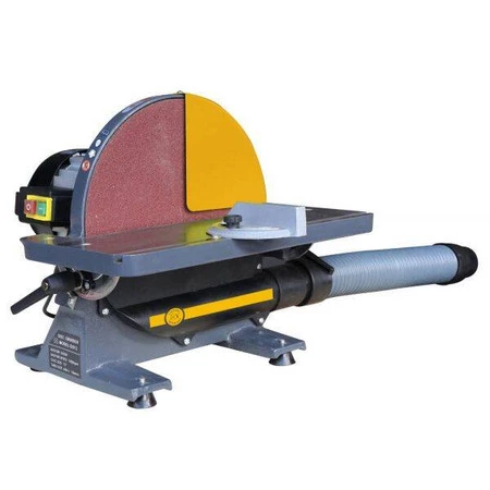 Szlifierka do drewna. Ze stołem szlifierskim żeliwnym, przechylanym w zakresie 90-45°. Wyposażona w suwak uciosowy.Posiada tarczę aluminiową do mocowania samoprzylepnych krążków ściernych. Wyposażona w ręczny hamulec tarczy. Króciec do dołączenia węża odciągowego 57 mm. Klasa szczelności IP 54.