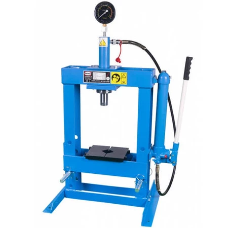 - Prasa hydrauliczna o spawanej i solidnej konstrukcji do uniwersalnego zastosowania, z ręcznym sterowaniem jednostki hydraulicznej
