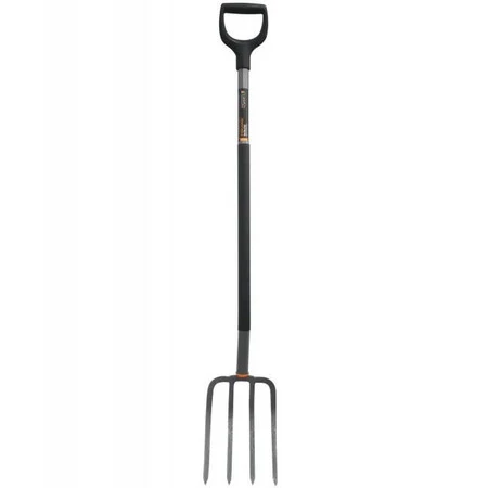 Ergonomiczne widły do kopania. Przeznaczone do przenoszenia ogrodniczych odpadków i wycinków, idealne do napowietrzania trawnika, przerzucania kępek trawy czy wybierania kamieni lub chwastów.