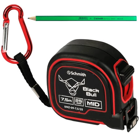 - Obustronna taśma miernicza o standardzie CE MID II o wyraźnej, dużej podziałce, zakończona magnesem neodymowym, odporna na ścieranie.