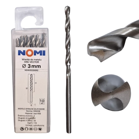 Wiertło do metalu 10 szt. 3mm Nomi hrc vector do stali tworzyw drewna żeliwa