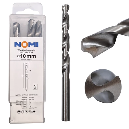 Wiertło do metalu 5 szt. 10mm Nomi hrc vector do stali tworzyw drewna żeliwa