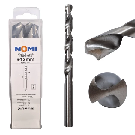 Wiertło do metalu 13mm Nomi hrc vector do stali tworzyw drewna żeliwa
