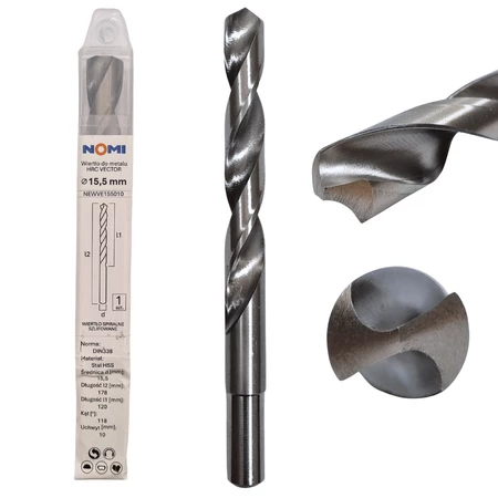 Wiertło do metalu 15,5mm Nomi hrc vector do stali tworzyw drewna żeliwa