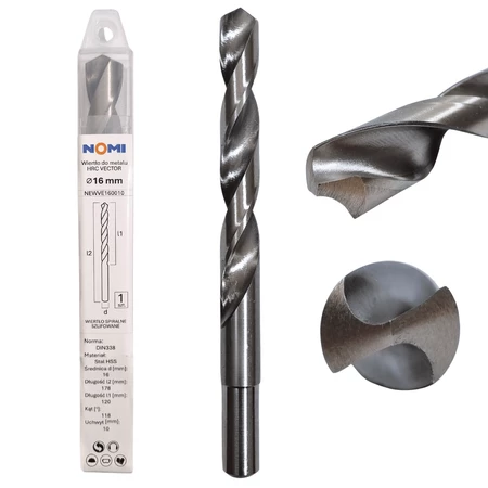 Wiertło do metalu 16mm Nomi hrc vector do stali tworzyw drewna żeliwa