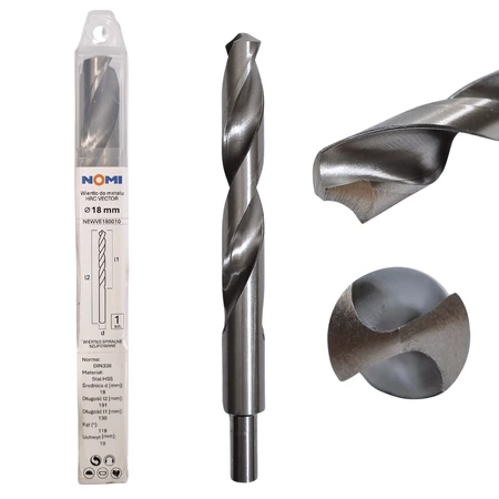 Wiertło do metalu 18mm Nomi hrc vector do stali tworzyw drewna żeliwa