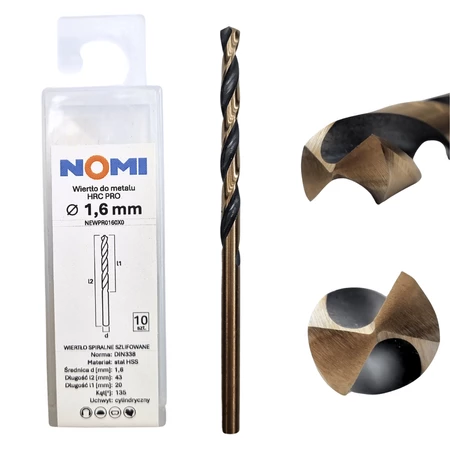 Wiertło do metalu 10 szt. 1,6mm Nomi hrc pro do stali tworzyw aluminium drewna