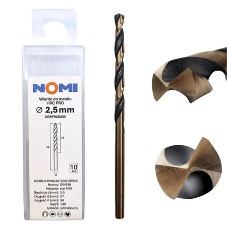 Wiertło do metalu 10 szt. 2,5mm Nomi hrc pro do stali tworzyw aluminium drewna