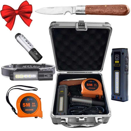 Zestaw prezentowy w walizce latarka miarka nóż czołówka na święta