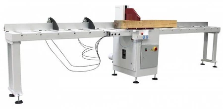 Piła poprzeczna, optymalizerka OPTIMAT Cross Cut S500 posiada bezpieczne oburęczne włączanie oraz regulowaną prędkość cięcia.| Stół podawczy | 2000 mm |