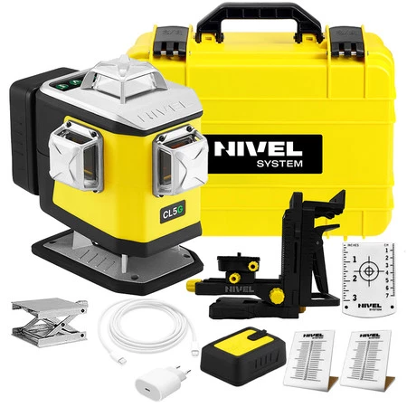 Laser krzyżowy CL5G Nivel System to nowoczesny wielozadaniowy laser krzyżowy z dobrze widzialną wiązką zielonego lasera (długość fali 515nm). Jest to pierwszy laser krzyżowy Nivel System umożliwiający elektroniczne pochylanie płaszczyzn w 2 osiach. Oznacza to możliwość pracy ze spadkami, podobnie jak w przypadku laserów rotacyjnych. Multilaser wyznacza 4 idealne linie odniesienia (2 w pionie i 2 w poziomie), każda w zakresie 360°. Sprzęt umożliwia wyznaczanie poziomej linii laserowej już na wysokości 20 mm. Umożliwia to np. obsadzanie cokołów czy układanie płytek już od samej podłogi. Klasyczne lasery krzyżowe nie dają takich możliwości.
