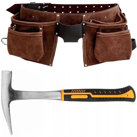 Pas narzędziowy dekarski monterski skórzany + Młotek ciesielski zestaw Schmith SPN01-02