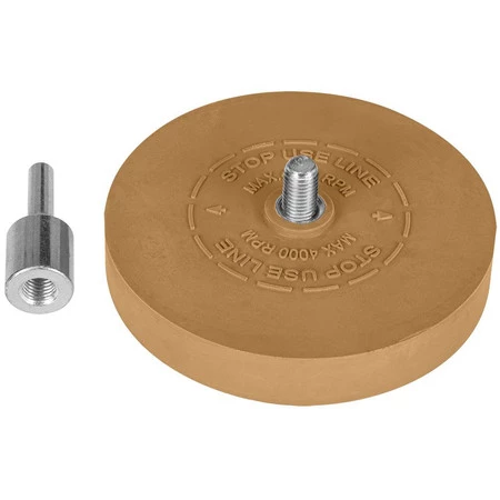 Tarcza do usuwania kleju 88 mm 55H811 GRAPHITE o średnicy 88 to niezawodne narzędzie przeznaczone do efektywnego usuwania naklejek i pozostałości kleju z różnych powierzchni, w tym m.in. z karoserii samochodowych. Wykonana z wysokiej jakości gumy, tarcza zapewnia delikatne, ale skuteczne działanie, chroniąc powierzchnię przed uszkodzeniami. Dzięki maksymalnej prędkości wynoszącej 4000 obrotów na minutę, tarcza GRAPHITE umożliwia szybkie oraz precyzyjne czyszczenie, co jest szczególnie ważne w profesjonalnych zastosowaniach motoryzacyjnych. To narzędzie jest niezbędne w każdym warsztacie samochodowym, oferując wygodne i bezpieczne rozwiązanie do usuwania uporczywych resztek kleju.