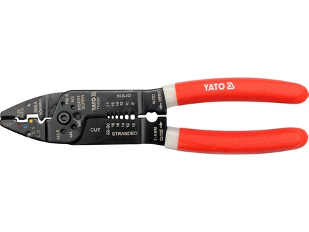 - Funkcje: cięcie przewodów, obcinak do śrub, ściągacz izolacji, zaciskanie końcówek przewodów zapłonowych