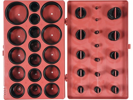 Zestaw 419 sztuk oringow wykonanych z NBR. Zestaw zawiera rozmiary od 3x1.5 mm do 50x3.5 mm. Całość umieszczono w wygodnym opakowaniu typu "sortownik".
