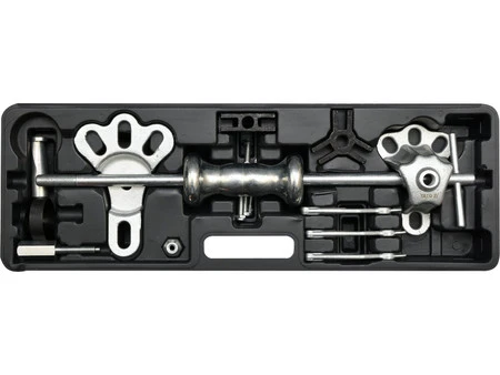 - Zawartość zestawu: ściągacz 3-ramienny zewnętrzny, ściągacz 2-ramienny zewnętrzny, ściągacz 3-ramienny wewnętrzny, ściągacz 2-ramienny wewnętrzny, ściągacz hakowy, ściągacz tylnej osi, ściągacz blacharski,