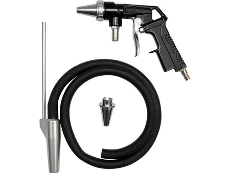 Pistolet do piaskowania służy do oczyszczania powierzchni ze starych powłok lakierniczych, rdzy oraz innych zabrudzeń, a także do kształtowania powierzchni. Oczyszczanie odbywa się za pomocą strumienia sprężonego powietrza i materiału ściernego.