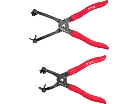 Zestaw szczypiec do opasek i przewodów gumowych YT-0645 to gwarancja szybkiej i bezpiecznej pracy przy układach samochodowych. Dwa hartowane narzędzia o różnych długościach zapewniają komfort i uniwersalność.