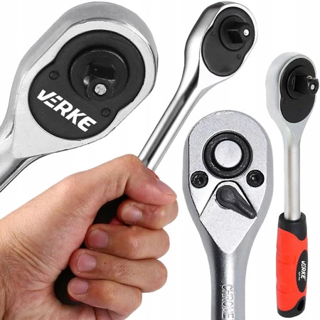 Grzechotki o wysokiej wytrzymałości, przeznaczona do obciążeń w warunkach domowych i serwisowych. Rękojeść wykonana jest ze stali stopowej chromowo-wanadowej. Wysoka ergonomia pracy uzyskana jest dzięki oprawie rękojeści z tworzywa. Uchwyt został specjalnie wyprofilowany w przedniej strefie trzymania dzięki czemu pewnie leży w dłoni. Powierzchnia chromowana, polerowana.