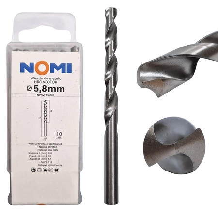 Wiertło do metalu 10 szt. 5,8mm Nomi hrc vector do stali tworzyw drewna żeliwa
