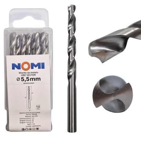 Wiertło do metalu 10 szt. 5,5mm Nomi hrc vector do stali tworzyw drewna żeliwa
