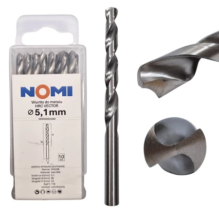 Wiertło do metalu 10 szt. 5,1mm Nomi hrc vector do stali tworzyw drewna żeliwa