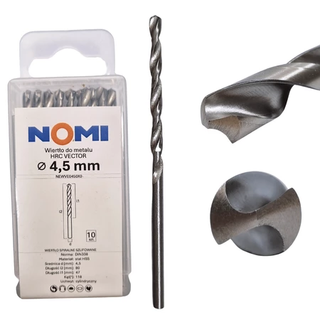 Wiertło do metalu 10 szt. 4,5mm Nomi hrc vector do stali tworzyw drewna żeliwa