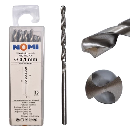 Wiertło do metalu 10 szt. 3,1mm Nomi hrc vector do stali tworzyw drewna żeliwa