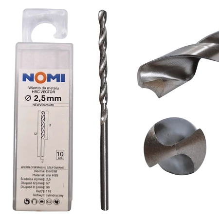 Wiertło do metalu 2,5mm Nomi hrc vector do stali tworzyw drewna żeliwa (10 szt.)