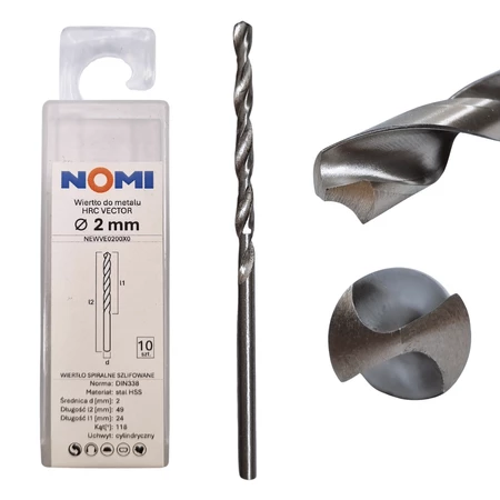 Wiertło do metalu 2mm Nomi hrc vector do stali tworzyw drewna żeliwa (10 szt.)