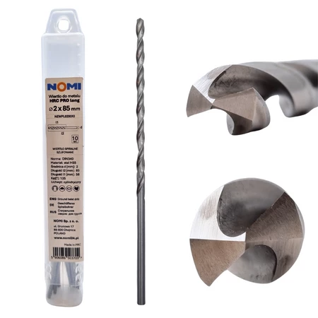 Wiertło do metalu 10 szt. 2x85mm przedłużane Nomi hrc pro long długie din 340