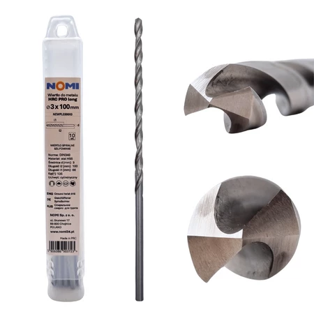 Wiertło do metalu 10 szt. 3x100mm przedłużane Nomi hrc pro long długie din 340