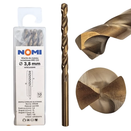 Wiertło do metalu kobaltowe 10 szt. 3,8mm hrc co Nomi do stali tworzyw aluminium
